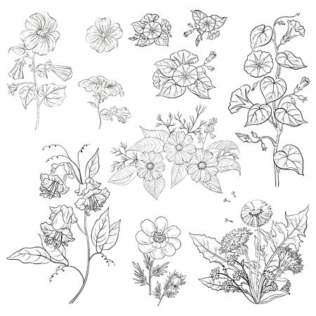 スケッチ花の装飾セットコスモスの花の図面白い背景に分離されたラインアートと白黒手描きの植物のイラスト要素ベクトル いたずら書きのベクターアート素材や画像を多数ご用意 Istock